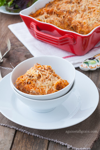 For dairy-free, substitute out all of the cheese for 2 cups of the nut-cheese from page 304 of Against all Grain