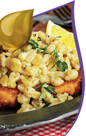 Put olive oil in a large skillet over medium heat and add the spaetzle, tossing to coat. Cook the spaetzle for 1 to 2 minutes to give the noodles some color. Serve on top of the Wiener schnitzel with fresh lemon and a drizzle of olive oil.