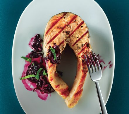 Grilled Salmon with Quick Blueberry Pan Sauce