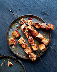 - 2 1/4 pounds skinless salmon fillet, cut into 1 1/2-inch pieces