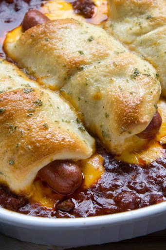 Remove baking dish from oven. Brush on top of each cheese dog with butter mixture. Serve immediately.