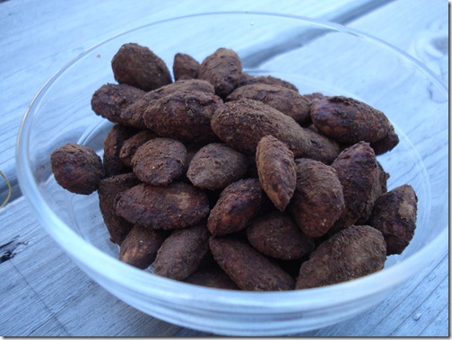 Add your cocoa powder & GF flour and mix until all almonds are coated.