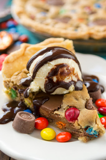 Press into prepared pan (dough is sticky, spray your hands with cooking spray to avoid it sticking to your hands). Press some remaining candy on the top for decoration. Press the sides of the crust that are showing with the tines of a fork a few times.