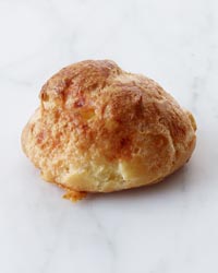 Transfer the dough to a piping bag fitted with a 1/2-inch plain tip. Pipe 1 1/2-inch mounds onto the baking sheets, leaving 1 inch between them. Sprinkle the mounds with about 1 cup of shredded Gruyère cheese. Bake the gougères about 30 minutes, until browned and puffed, shifting the sheets from top to bottom and front to back halfway through. Serve.