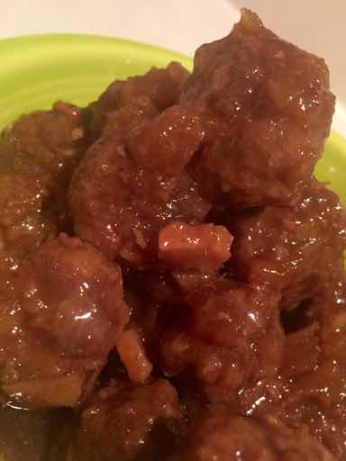 Drain pineapple, reserving juice. In medium saucepan: combine brown sugar, corn starch; stir in juice, bouillon, and soy sauce. Heat to boiling. Stirring constantly until thick and clear; boil one minute. Stir in pineapple and green pepper (or green onion). add sauce to meatballs. Simmer for about 10 minutes. Serve Hot.