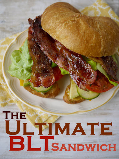 5. To assemble sandwiches, spread cut surfaces of all 4 croissants with fig mustard. Layer on 1 slice of cheese, avocado slices, cucumber slices, marinated tomatoes, lettuce leaves, 3 strips of candied bacon and a final slice of cheese.