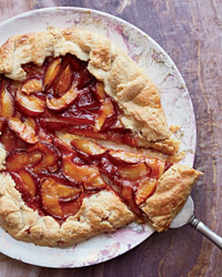 Bake the galette in the middle of the oven for about 1 hour, until the fruit is very soft and the crust is richly browned. If any juices have leaked onto the baking sheet, slide a knife under the galette to release it from the sheet. Evenly brush the preserves over the hot fruit; brush some up onto the crust, too, if desired. Let the galette cool to room temperature before serving.
