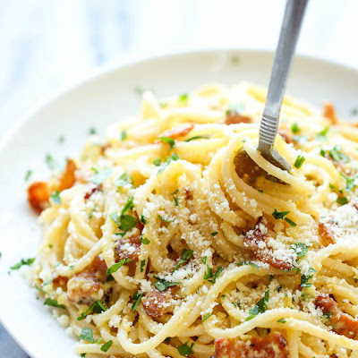 Stir in garlic until fragrant, about 1 minute. Stir in pasta and egg mixture, and gently toss to combine; season with salt and pepper, to taste. Add reserved pasta water, one tablespoon at a time, until desired consistency is reached.