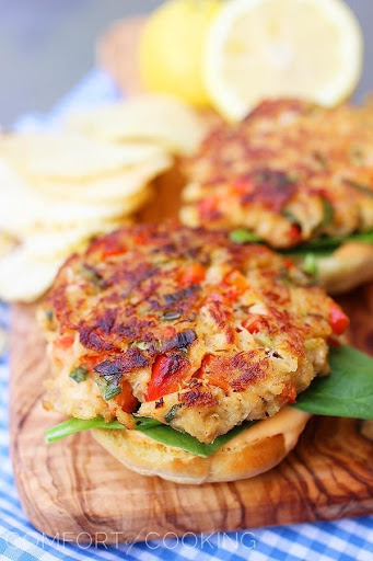 If you love crab like I do (lotsa meat, little breadcrumbs) you will just flip for these. The crab is the true star, but spicy and citrusy notes make it really shine. The spicy mayo is simple and scrumptious too – just mayo, lemon juice and a little Sriracha. Or a lot, if you can take the heat!