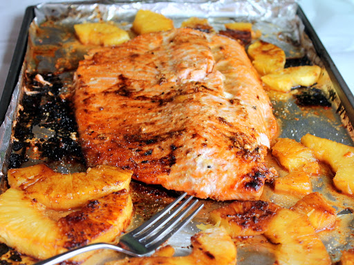 Brown Sugar Honey Marinated Salmon with Carmalized Pineapple Quino