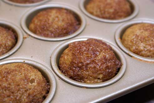 Pour into greased baking cups or muffin tins, and sprinkle with brown sugar-cinnamon topping.
