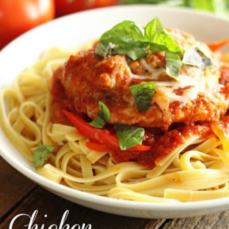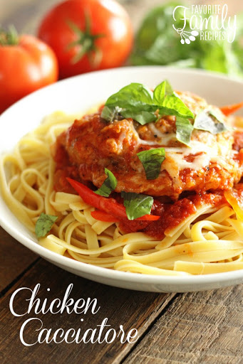 Crazy easy version of chicken cacciatore using your favorite jarred spaghetti sauce or marinara with some peppers and onions added. Can be served with pasta, steamed vegetables, or roasted potatoes. Delicious!