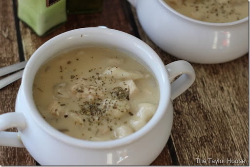 Step 4 – Cut the Pillsbury Biscuits into quarters and add them into the slow cooker after the 3 hours and let everything cook on low for another hour. I ended up adding a small amount more of chicken broth towards the end but you can watch and decide the thickness you want.