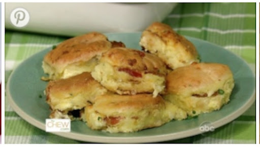 For the Cheddar Chive Biscuits: Preheat the oven to 425 degrees. In a large bowl, combine flour, baking powder, salt, baking soda and sugar. Whisk until well combined.