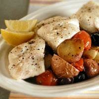 Roasted Cod with Potatoes and Olives