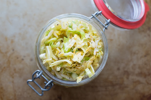 Place the shredded cabbage in a medium size mixing bowl. Stir together all remaining ingredients and then pour over the cabbage. Toss well to coat. Serve immediately or refrigerate until ready to eat. Enjoy!