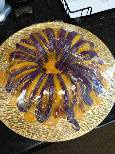 This is my LSU cake, made with this simple glaze recipe. Have fun with adding food coloring to the glaze.