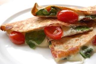 3. Spread basil aioli over one half of tortillas. Top with spinach, tomatoes and then cheese.