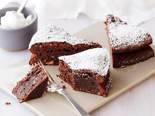 Pour the batter into the prepared cake pan. Bake on the center rack of the oven until the sides of the cake start releasing from edges of the pan, 40 minutes. This cake is almost a hazelnut fudge, so no need to poke with a toothpick to check if the inside is ready or not. The cake will come out of the oven nice and fluffy and souffled, but it will deflate to half the size during its cool-off period.