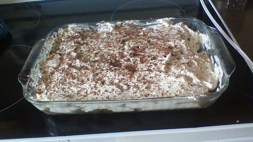 To assemble place a layer of savoiardi in the bottom of a shallow 2 quart baking dish. Sprinkle with half the syrup. Spread with half the filling. Repeat with remaining savoiardi, syrup, and filling, spreading the top smooth using a spatula.