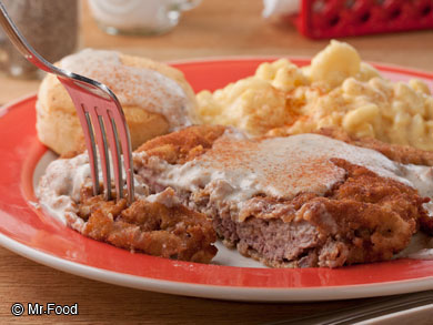 Make a white gravy by adding remaining butter to skillet and melting over low heat; add remaining flour and stir until smooth. Cook 1 minute, stirring constantly. Gradually add milk; cook over medium heat until thickened and bubbly, stirring constantly. Stir in remaining salt and pepper. Serve steaks topped with gravy.