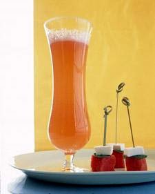 In a large pitcher, combine grapefruit juice, Campari, and chilled syrup. Divide among eight glasses; top with Champagne. Serve immediately.
