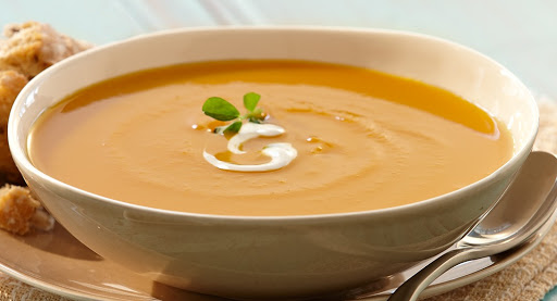 combine squash, onion, carrots, broth and salt. Simmer, uncovered until squash is very tender, about 40 min. Puree soup in blender or food processor with butter. Whisk cream into soup. Serve with a dollop of sour cream.