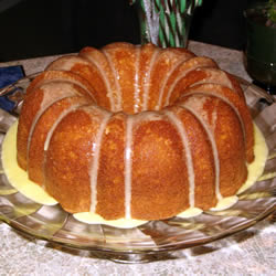 Bake at 350 degrees for 50 to 55 minutes. Cool upright in pan 1 hour remove from pan. Cool. Combine ingredients for glaze until smooth, drizzle over cake