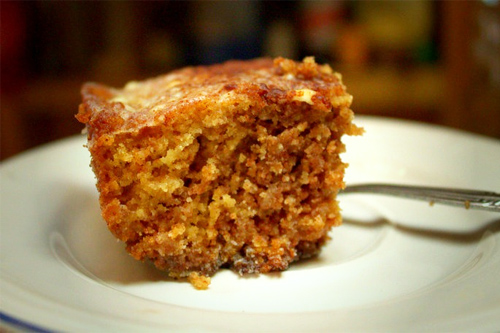Whisk these together and slowly begin incorporating the surrounding dry ingredients. When these are partially mixed together, pour in the melted coconut oil. Stir together just until combined. Scrape the batter out into prepared 9x13" pan.