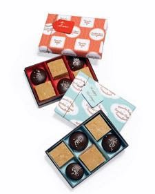 Caramallows, true to their name, bring together gooey caramel and home-made marshmallows, and then enrobe both in chocolate. Get the packaging how-to for the Chocolate-Dipped Caramallows.