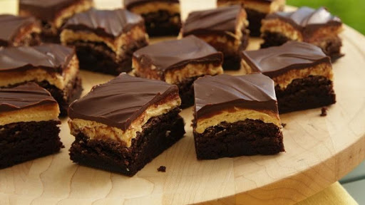 In small microwavable bowl, microwave topping ingredients uncovered on High 30 to 60 seconds; stir until smooth. Cool 10 minutes; spread over filling. Refrigerate about 30 minutes or until set. For brownies, cut into 6 rows by 4 rows. Store covered in refrigerator.