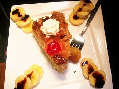 In a large bowl mix together shortening, sugar till light. Beat in egg, and vanilla. Add flour,baking powder an salt and alternating with reserved 1/2 cup of Amaretto and juice till well blended. Spread over top of mixture. Bake at 350 for 45 minutes till brown and done in middle. Cool one minute, invert on a cookie sheet lined with wax paper to cool. Top with whipped cream, garnish with chocolate drizzled sliced banana's or ice cream.
