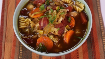 Add Vegetable Broth and undrained Tomatoes to the Vegetables. Stir in Bay Leaves, Oregano, White Pepper, Salt and Red Pepper Flakes (if desired). Cook for 5 minutes. Add Pasta and rinsed Beans. Bring to a boil over high heat. Reduce heat to medium-low and simmer for about 15 minutes or until Pasta is al dente (just tender to the bite). Carefully remove Bay Leaves. Ladle soup into bowls. Sprinkle with Parsley, if desired.