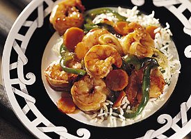 Stir in soy sauce mixture and shrimp. Stir-fry 3 to 5 minutes, until shrimp are pink and firm and sauce is thickened. Serve over rice.