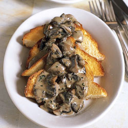 2. Add sherry and sage. Simmer for 10 minutes more. Spoon over toast.