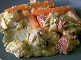 Divide the seafood among the 4 gratin dishes. Strew the vegetables on top of each dish. Pour the sauce equally over the seafood and vegetables and spoon the crumbs evenly on top. Bake for 20 minutes, until the top is browned and the sauce is bubbly. Serve hot.