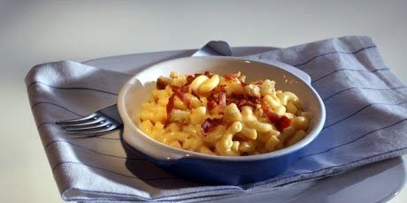 If serving as an appetizer, spoon the macaroni into ramekins or onion soup bowls. Top with bacon and croutons. Season with pepper.