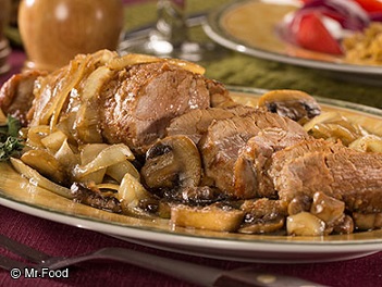 In a large skillet or Dutch oven over medium-high heat, heat oil. Add tenderloin and cook 6 to 8 minutes, turning to brown on all sides; remove to a platter and set aside. Add mushrooms and onions to skillet and sauté 6 to 8 minutes, or until tender, stirring occasionally; stir in the wine. Return tenderloin to skillet and cook 6 to 8 minutes, or until cooked through.