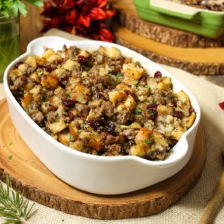 The bright, tangy flavors of dried cranberries and tart apples are the perfect addition to traditional stuffing made with savory Jones breakfast sausage.