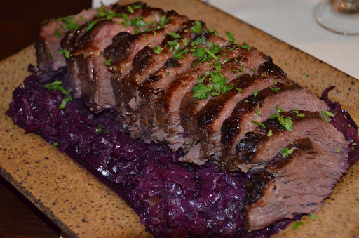 Bake for 2 hours without opening the lid or the oven door. The internal temperature of the brisket should be around 185ºF when fully baked. Let the brisket cool for 10 to 15 minutes and then slice against the grain and serve with the cabbage.