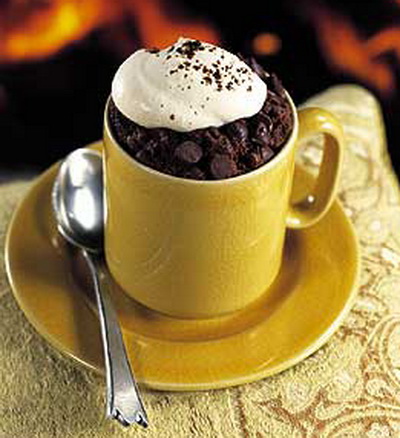 These individual soft-centered cakes are baked and served in ovenproof mugs. (As an alternative, eight-ounce ramekins or soufflé dishes can be used.)