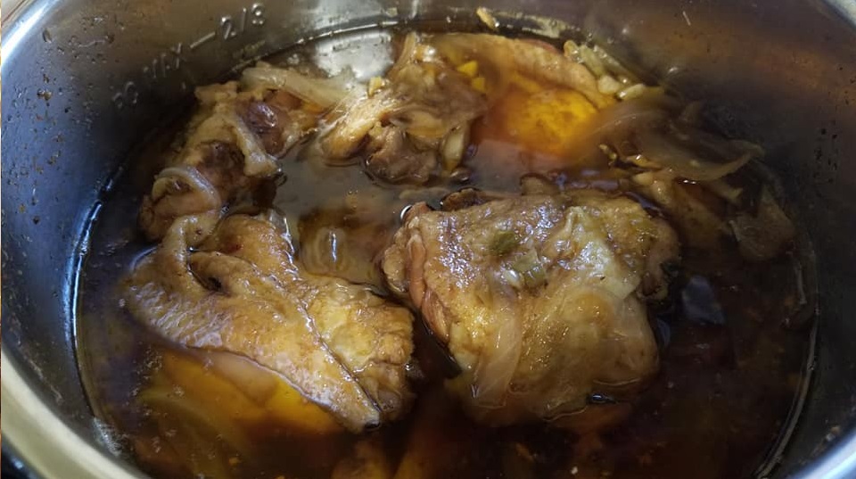 Mix remaining ingredients in a large bowl and pour over chicken. Set to pressure cook for 14 minutes. Once done, natural release pressure valve. Remove chicken thighs from IP to a serving dish.