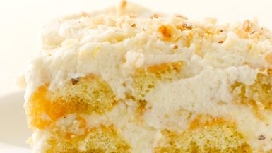 Form 2 more identical layers, each consisting of 16 dipped ladyfinger cookies and ending with a layer of the mascarpone mixture sprinkled with the hazelnut mixture.