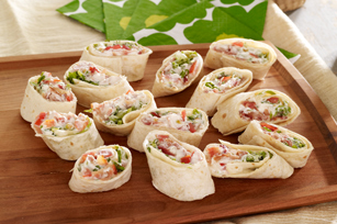 SPREAD onto tortillas; top with lettuce. Roll up tightly.