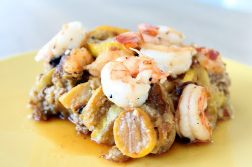 Add the sliced squash (it may be easiest to add it in several batches) and stir to coat with meat and rendered fat. Turn the heat to high. This is necessary to quickly cook off any moisture the squash releases so that the squash can brown and caramelize, rather than “boil” in its own water. If the sausage and bacon have not rendered enough fat to cook the squash, then add some butter to the pot. The squash is done once it is slightly browned and there is no liquid sitting in the pot. By this time, the squash will have reduced by about half. Season with your choice of salt, pepper, Cajun seasoning and/or hot sauce.