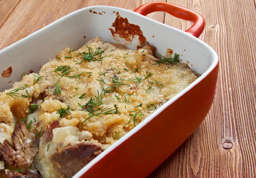 Remove, garnish with parsley or rosemary and let cool for 10-15 minutes. Serve warm.