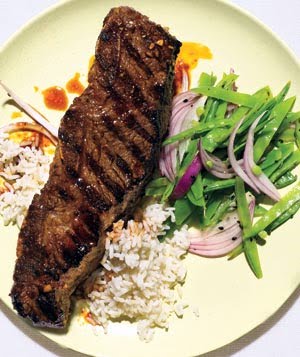 2.Heat grill to medium-high. Remove the ribs from the marinade (discard the marinade) and grill for 5 to 6 minutes per side for medium-rare. Serve with the reserved marinade.