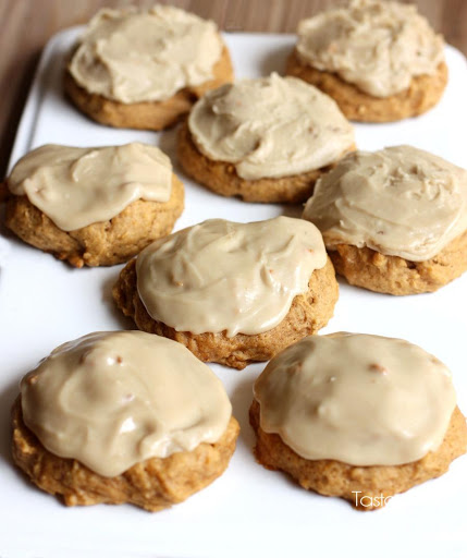 In a bowl work butter until creamy. Gradually work in 1 cup sugar until the mix is smooth. Add 1 c pumpkin, egg and vanilla. Beat well. Sift together flour, baking powder, baking soda, cinnamon and salt. Blend dry mix into wet mix. Drop by teaspoonful onto greased cookies sheets and bake 10 minutes in 375 degree oven. Makes 50 cookies.