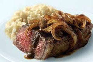 Strip Steak with Onion Wine Sauce