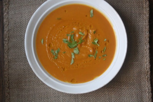 Puree with an immersion blender or in a stand blender until very smooth. Garnish with cilantro leaves or toasted coconut.